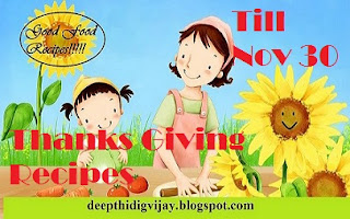 Friends Thanks giving is approaching, I hope every one has started googling recipes. Turkey is the common recipe in every home for thanks giving. I think this will be a great advantage for those who are searching for the thanks giving recipes. Hope you will post your favorite recipes for thanks giving to me. There are no rules, the recipe can be newly prepared or which you have prepared for the last thanks giving. The winners will get a surprise gift. This contest is open to all. You need not have to be a blogger to participate in this contest.